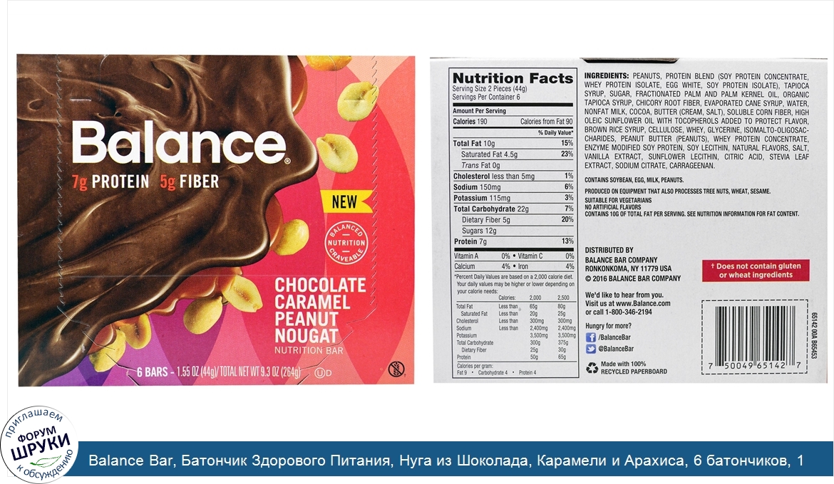 Друзья, если у вас есть отзыв/дополнение/комментарий/вопрос относительно Balance Bar, Батончик Здорового Питания, Нуга из Шоколада, Карамели и Арахиса, 6 батончиков, 1,55 унции (44 г) каждый - напишите его ответом в эту тему (это будет полезно всему сообществу в целом и вам в отдельности).