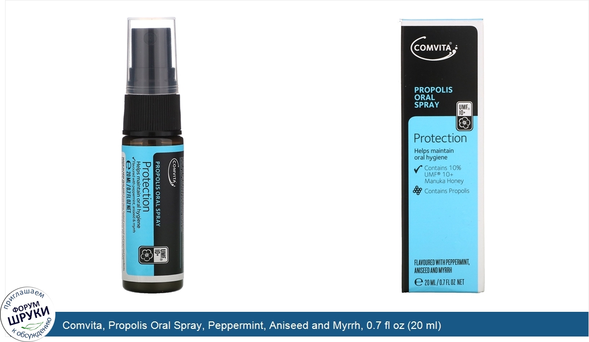 Друзья, если у вас есть отзыв/дополнение/комментарий/вопрос относительно Comvita, Propolis Oral Spray, Peppermint, Aniseed and Myrrh, 0.7 fl oz (20 ml) - напишите его ответом в эту тему (это будет полезно всему сообществу в целом и вам в отдельности).