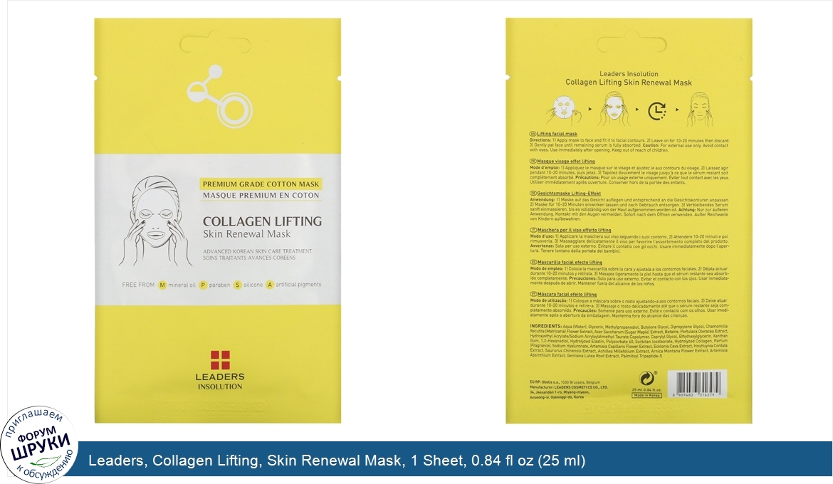 Друзья, если у вас есть отзыв/дополнение/комментарий/вопрос относительно Leaders, Collagen Lifting, Skin Renewal Mask, 1 Sheet, 0.84 fl oz (25 ml) - напишите его ответом в эту тему (это будет полезно всему сообществу в целом и вам в отдельности).