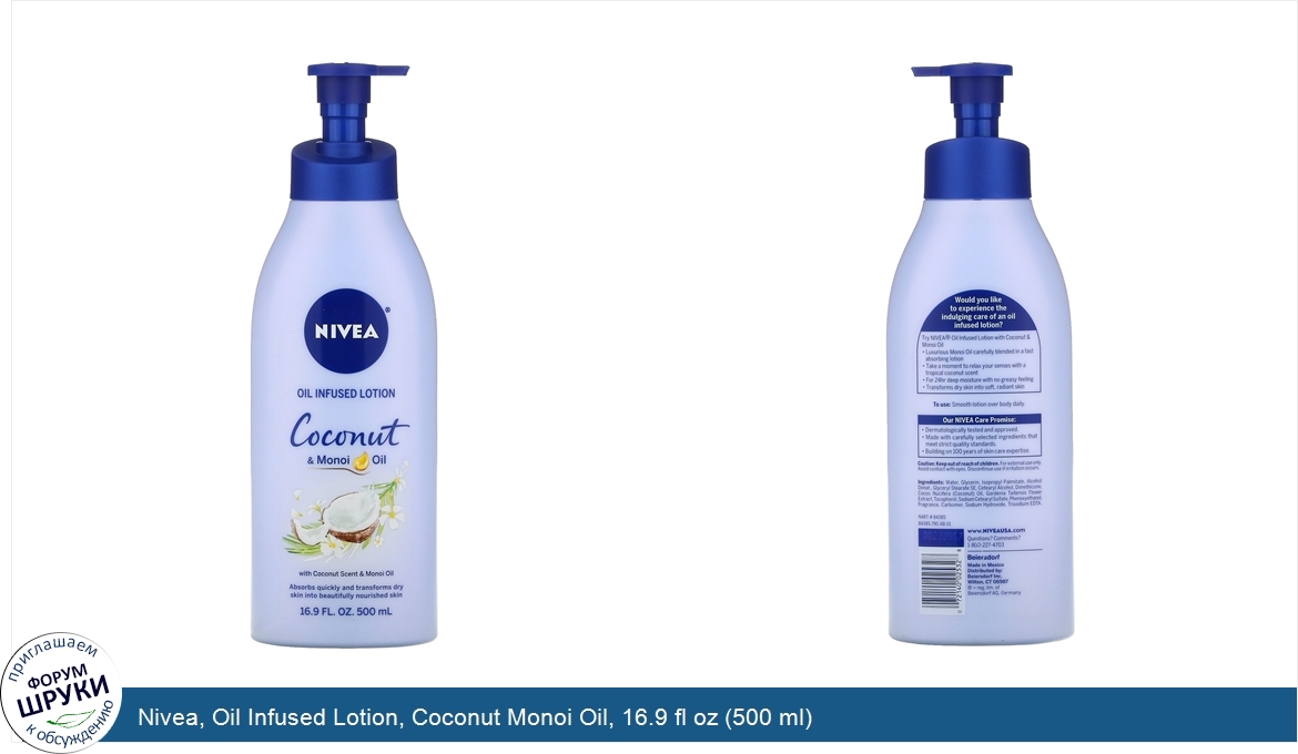 Nivea, Oil Infused Lotion, Coconut Monoi Oil, 16.9 fl oz (500 ml)