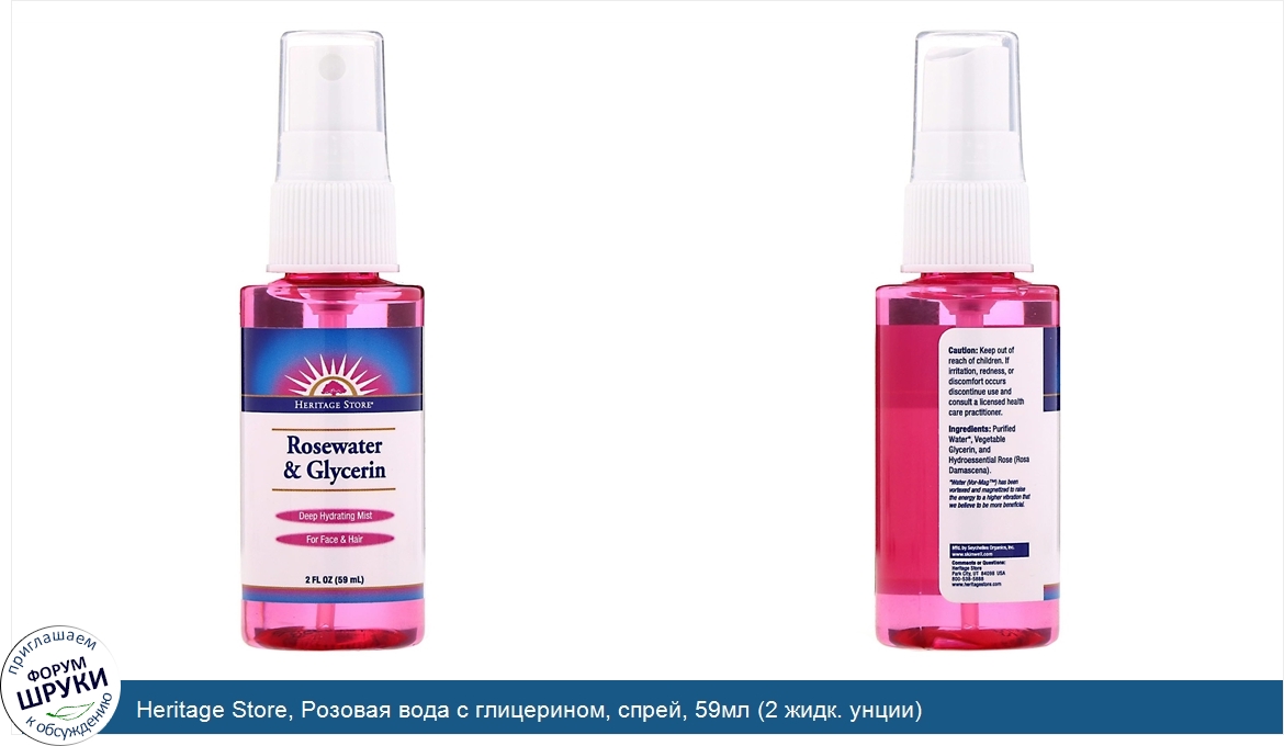 Heritage Store, Розовая вода с глицерином, спрей, 59мл (2 жидк. унции)