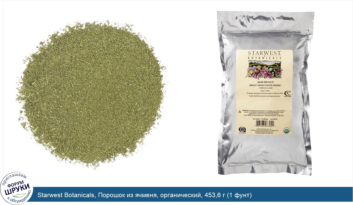 Starwest Botanicals, Порошок из ячменя, органический, 453,6 г (1 фунт)