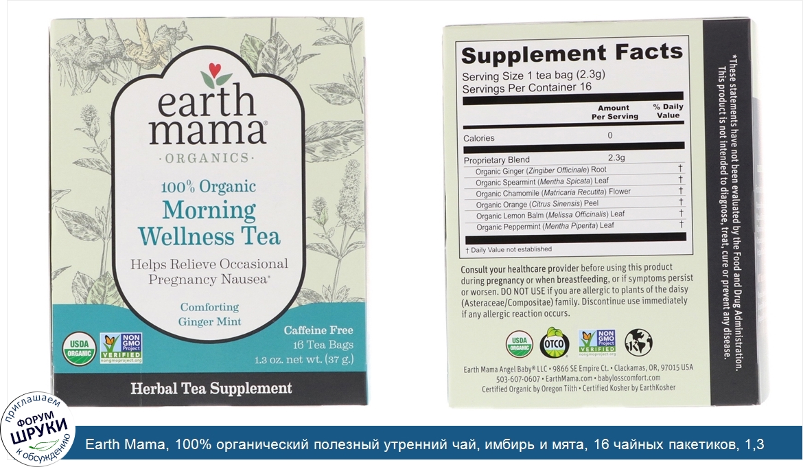Друзья, если у вас есть отзыв/дополнение/комментарий/вопрос относительно Earth Mama, 100% органический полезный утренний чай, имбирь и мята, 16 чайных пакетиков, 1,3 унц. (37 г) - напишите его ответом в эту тему (это будет полезно всему сообществу в целом и вам в отдельности).