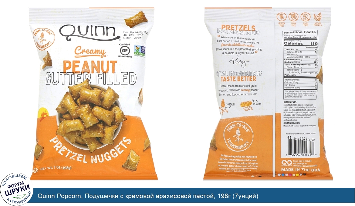 [DESCRIPT]Farm-To-Bag Transparency. Отсутствие глютена в составе подтверждено сертификатом Certified Gluten-Free®. Сертификат Non GMO Project Verified. Кошерный продукт. Не содержит кукурузы. Не содержит молочных продуктов. Веганский продукт. Pretzels Reimagined. «Когда родился мой сын Квинн, я поставила себе цель: сделать мой любимый перекус из детства полезным. У нас ушли на это годы, но нет ничего невозможного, и наши продукты тому доказательство.». — Кристи. Натуральные ингредиенты вкуснее. Подушечки изготовлены из зернового сорго, известного с давних времен, наполнены кремовой арахисовой пастой и посыпаны каменной солью. В основе нашей политики Farm-to-Bag лежит убеждение, что прозрачность — самая мощная сила во благо при производстве продуктов питания. Она вдохновляет нас выбирать более натуральные продукты и, конечно, создавать более полезные перекусы.[/DESCRIPT]... (описание дополняется)