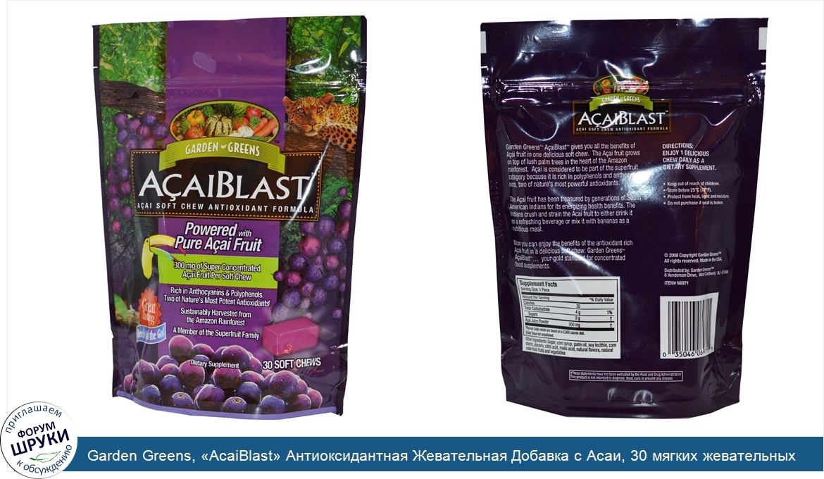 Друзья, если у вас есть отзыв/дополнение/комментарий/вопрос относительно Garden Greens, «AcaiBlast» Антиоксидантная Жевательная Добавка с Асаи, 30 мягких жевательных таблеток - напишите его ответом в эту тему (это будет полезно всему сообществу в целом и вам в отдельности).