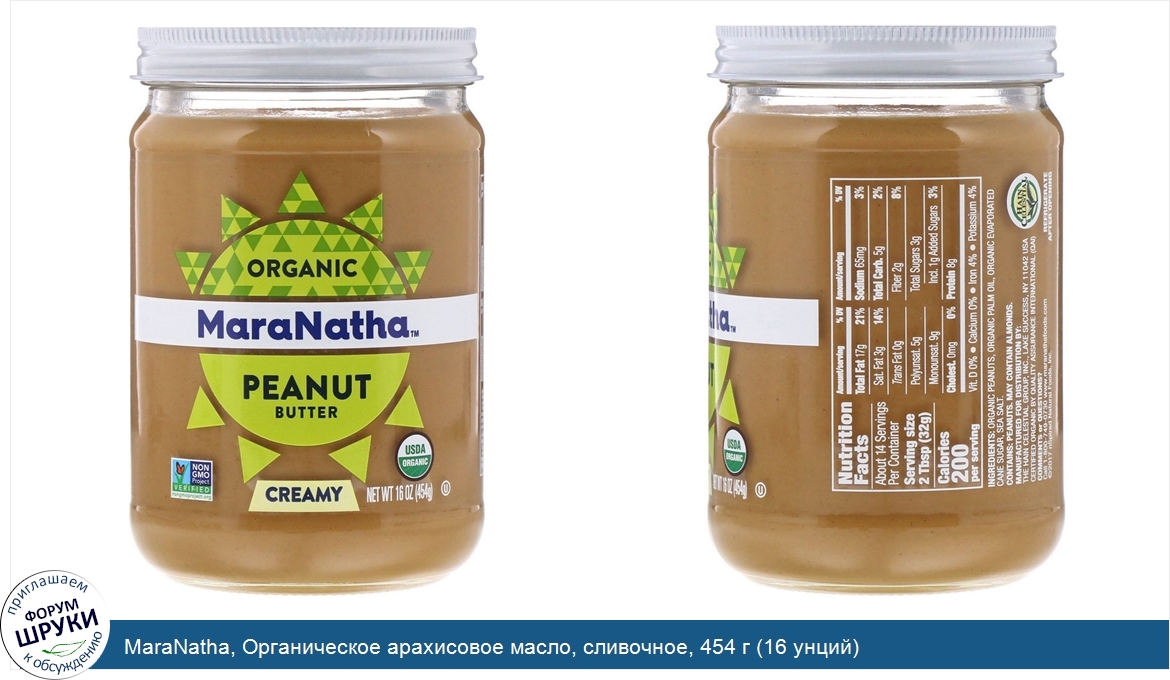 MaraNatha, Органическое арахисовое масло, сливочное, 454 г (16 унций)