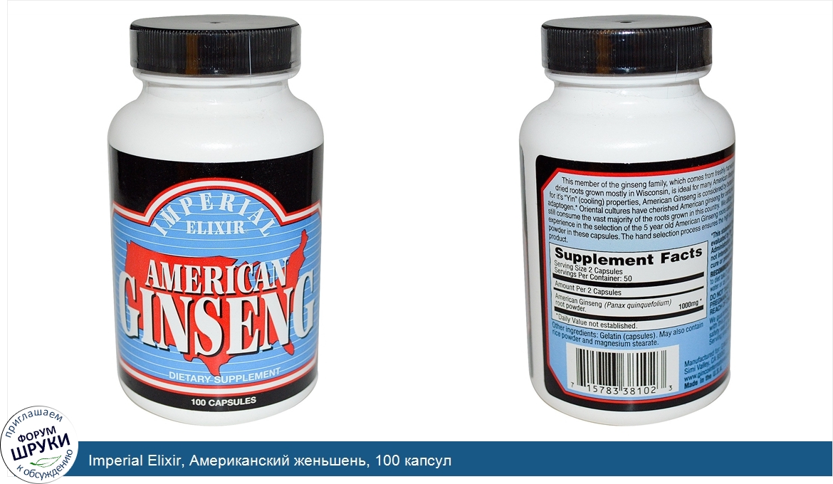 Imperial Elixir, Американский женьшень, 100 капсул