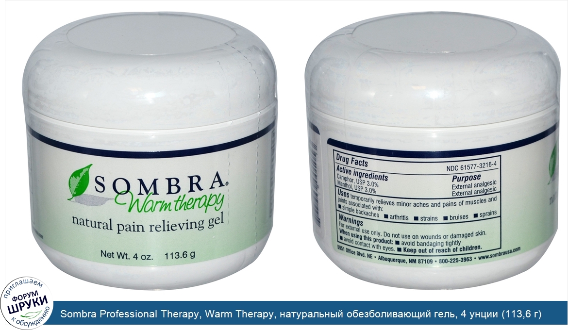 Друзья, если у вас есть отзыв/дополнение/комментарий/вопрос относительно Sombra Professional Therapy, Warm Therapy, натуральный обезболивающий гель, 4 унции (113,6 г) - напишите его ответом в эту тему (это будет полезно всему сообществу в целом и вам в отдельности).