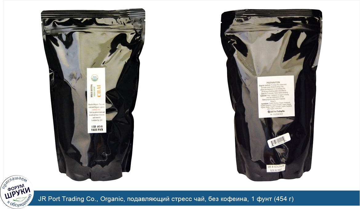 JR Port Trading Co., Organic, подавляющий стресс чай, без кофеина, 1 фунт (454 г)