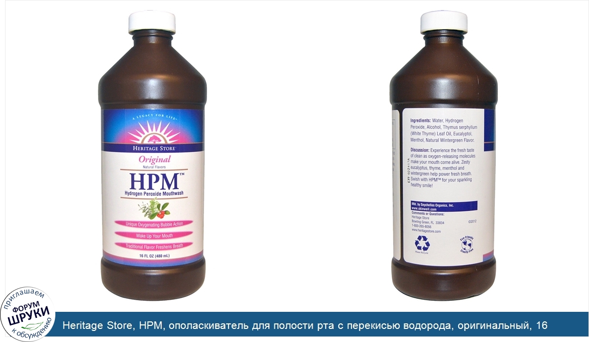 Heritage Store, HPM, ополаскиватель для полости рта с перекисью водорода, оригинальный, 16 жидких унций (480 мл)