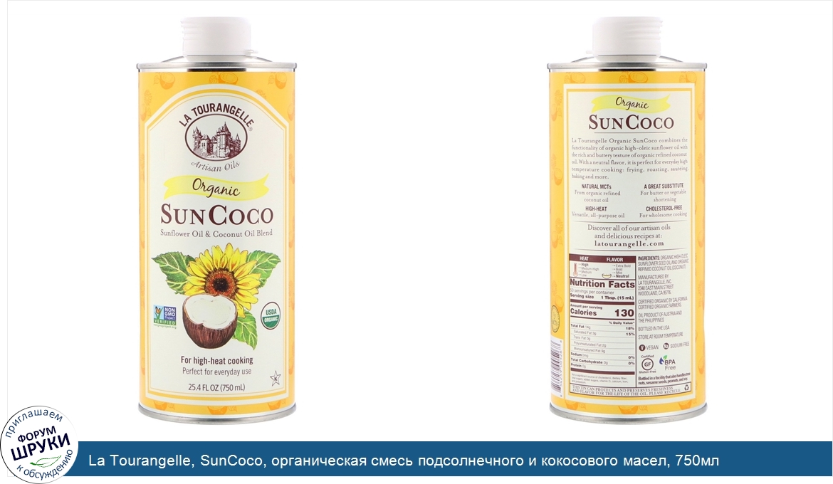 Друзья, если у вас есть отзыв/дополнение/комментарий/вопрос относительно La Tourangelle, SunCoco, органическая смесь подсолнечного и кокосового масел, 750мл - напишите его ответом в эту тему (это будет полезно всему сообществу в целом и вам в отдельности).