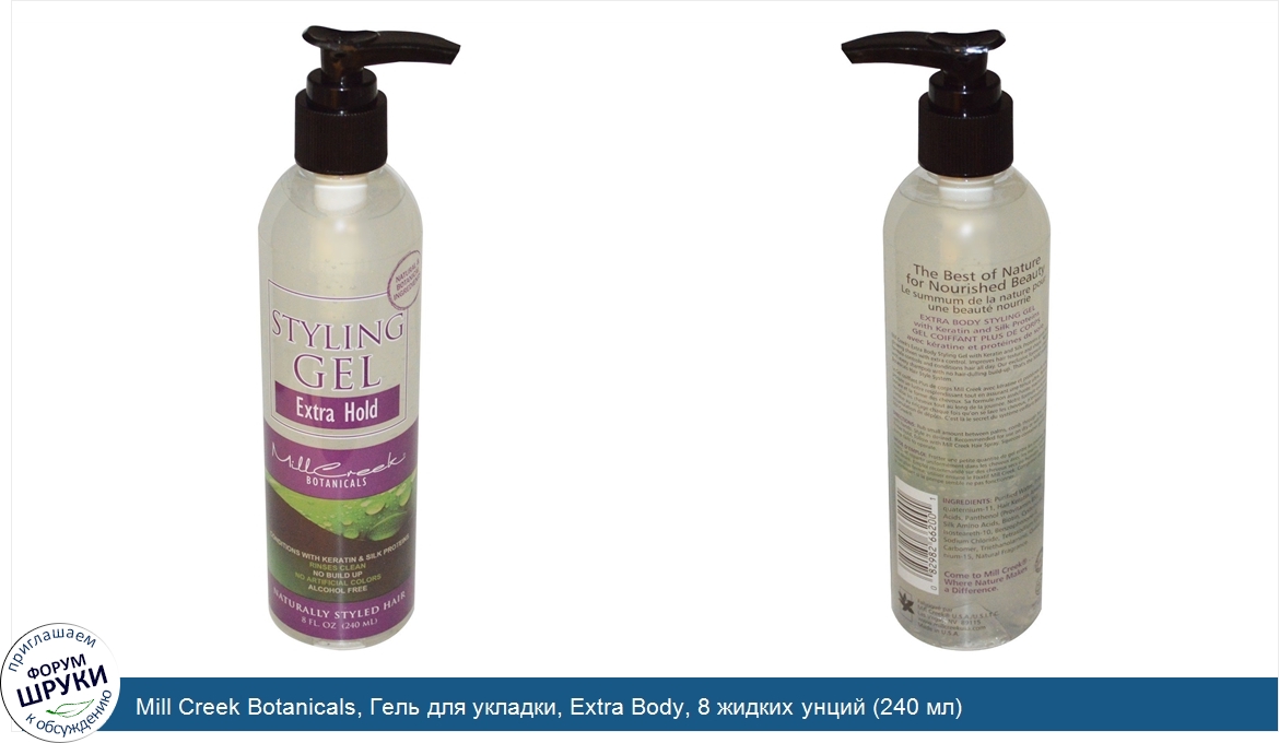 [DESCRIPT]Natural Botanical Ingredients. Botanicals. Conditions with Keratin Silk Proteins. Rinses Clean. No Build Up. No Artificial Colors. Alcohol Free. Naturally Styled Hair. Cruelty-Free. The Best of Nature for Nourished Beauty. Extra Body Styling Gel with Keratin and Silk Proteins. Mill Creek's Extra Body Styling Gel with Keratin and Silk Proteins gives hair a glowing sheen with extra control. Improves hair texture and shape. Non-drying formula controls and conditions hair all day. Our exclusive formula rinses clean with every shampoo with no hair-dulling build-up. That's the Mill Creek Botanicals Hair Style System. Come to Mill Creek. Where Nature Makes a Difference.[/DESCRIPT]... (описание дополняется)
