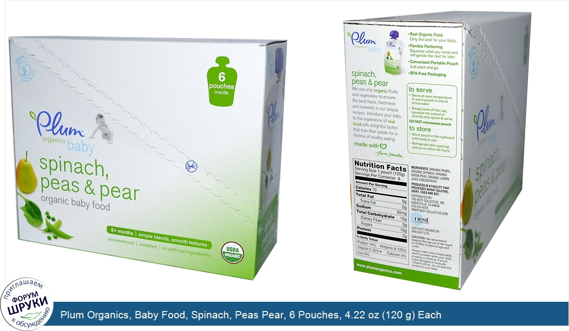 Друзья, если у вас есть отзыв/дополнение/комментарий/вопрос относительно Plum Organics, Baby Food, Spinach, Peas Pear, 6 Pouches, 4.22 oz (120 g) Each - напишите его ответом в эту тему (это будет полезно всему сообществу в целом и вам в отдельности).