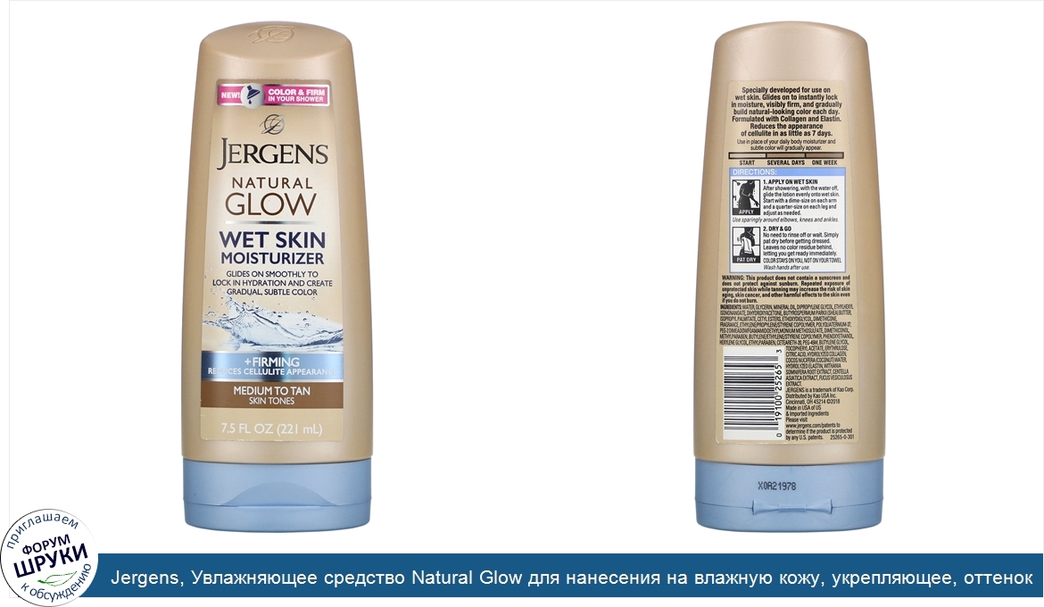 ru Jergens, Увлажняющее средство Natural Glow для нанесения на влажную кожу, укрепляющее, оттенок Medium to Tan (221мл)