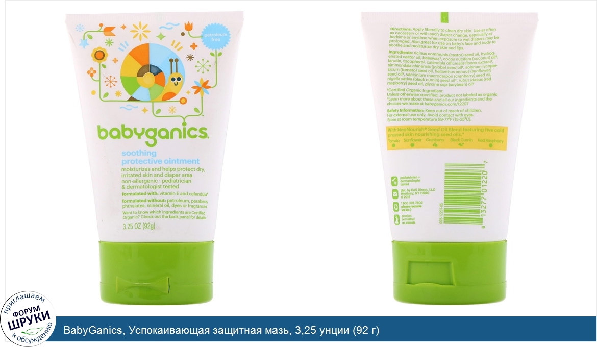 Друзья, если у вас есть отзыв/дополнение/комментарий/вопрос относительно BabyGanics, Успокаивающая защитная мазь, 3,25 унции (92 г) - напишите его ответом в эту тему (это будет полезно всему сообществу в целом и вам в отдельности).