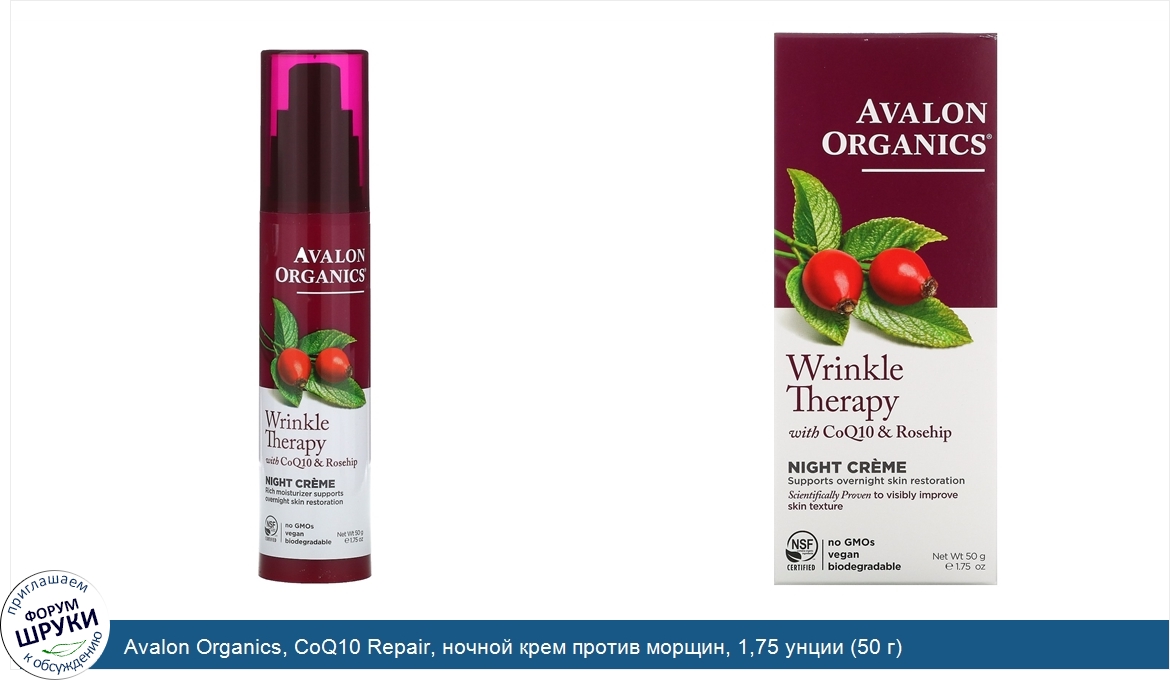 Avalon Organics, CoQ10 Repair, ночной крем против морщин, 1,75 унции (50 г)
