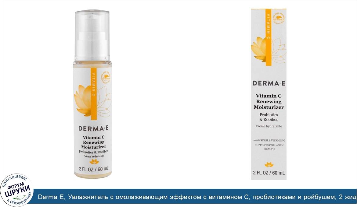 ru Derma E, Увлажнитель с омолаживающим эффектом с витамином C, пробиотиками и ройбушем, 2 жидк. унции (60 мл)