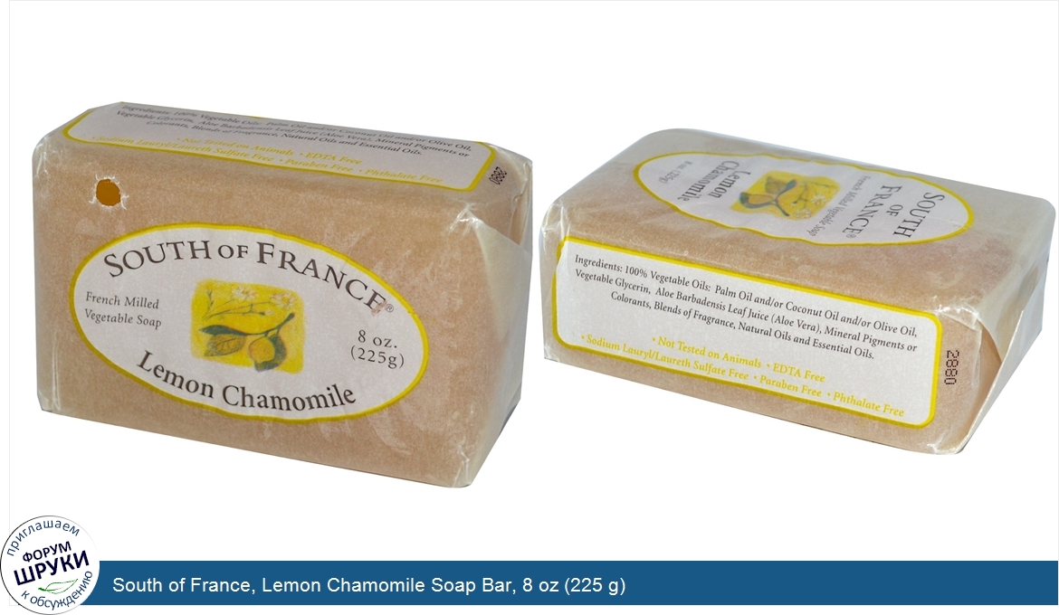 Друзья, если у вас есть отзыв/дополнение/комментарий/вопрос относительно South of France, Lemon Chamomile Soap Bar, 8 oz (225 g) - напишите его ответом в эту тему (это будет полезно всему сообществу в целом и вам в отдельности).