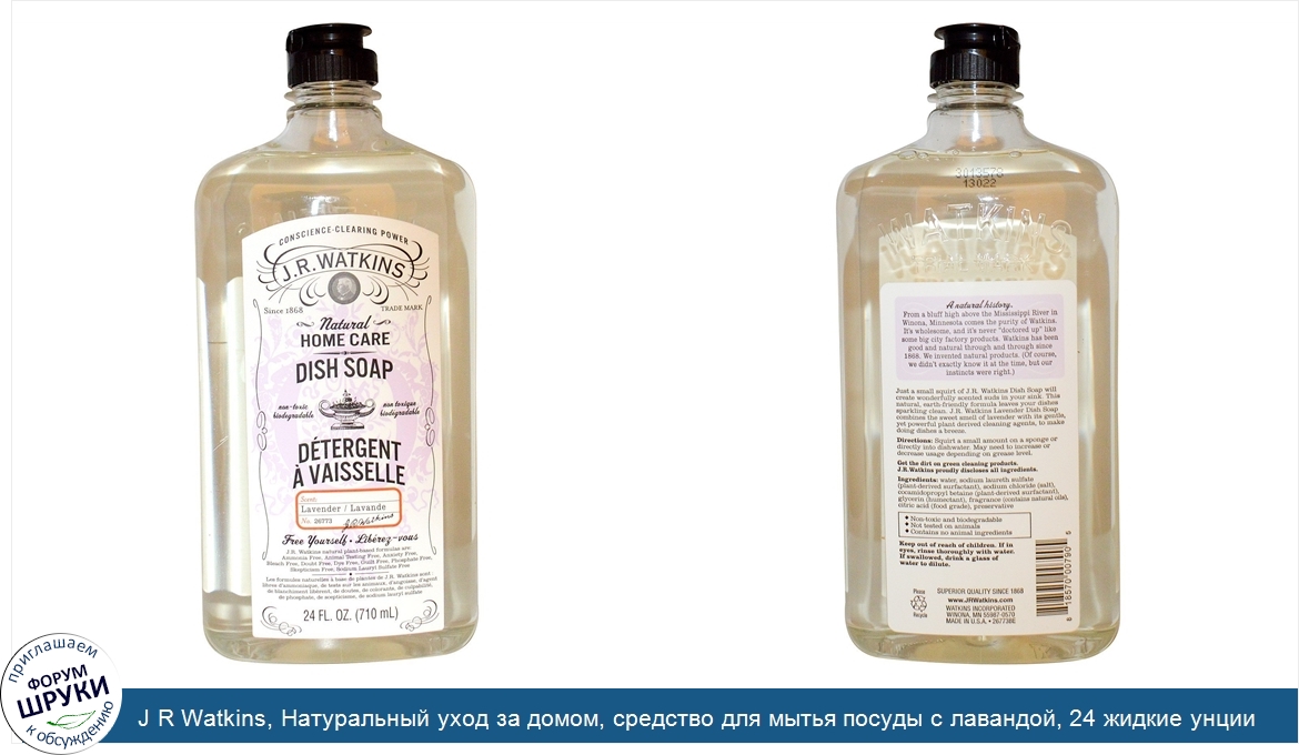Друзья, если у вас есть отзыв/дополнение/комментарий/вопрос относительно J R Watkins, Натуральный уход за домом, средство для мытья посуды с лавандой, 24 жидкие унции (710 мл) - напишите его ответом в эту тему (это будет полезно всему сообществу в целом и вам в отдельности).