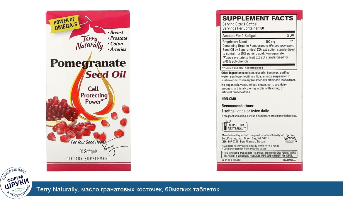 Категории: Terry Naturally, Пищевые добавки, Зелень и суперфуды, Экстракт граната, 53558