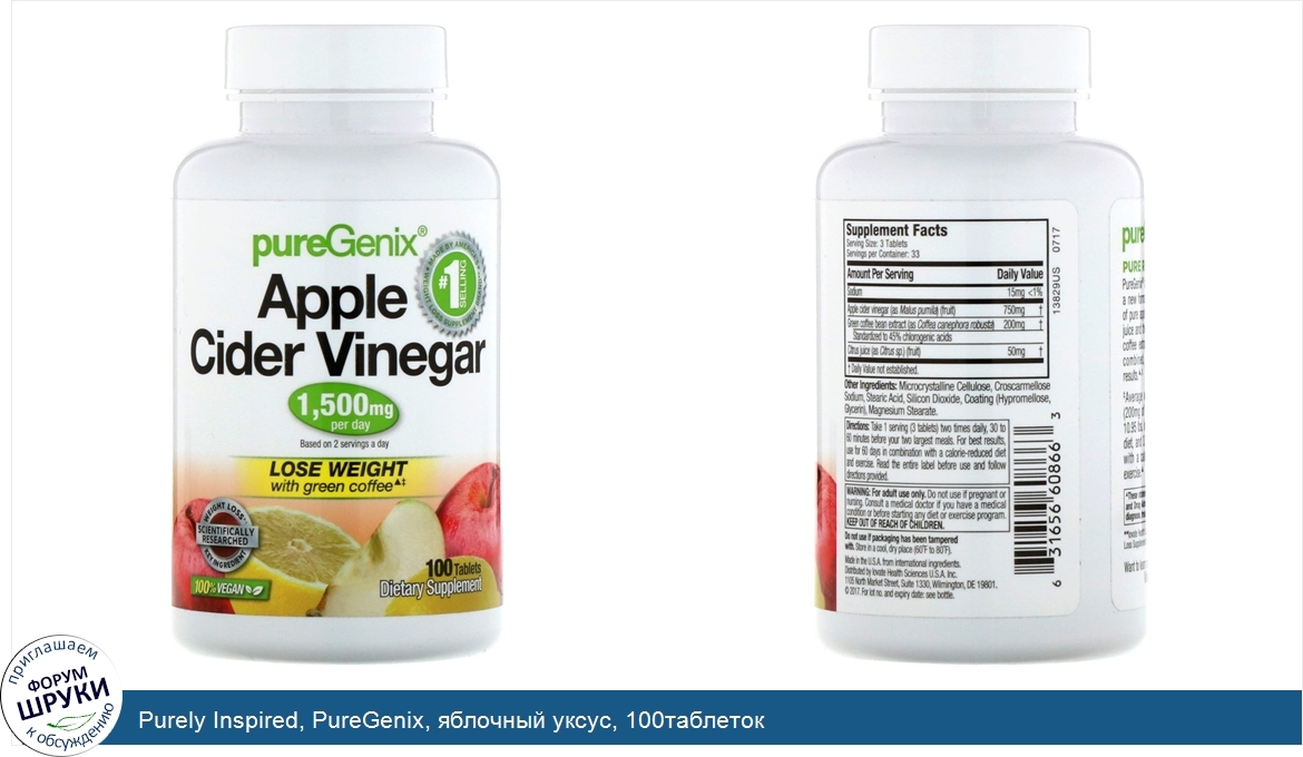 Друзья, если у вас есть отзыв/дополнение/комментарий/вопрос относительно Purely Inspired, PureGenix, яблочный уксус, 100таблеток - напишите его ответом в эту тему (это будет полезно всему сообществу в целом и вам в отдельности).