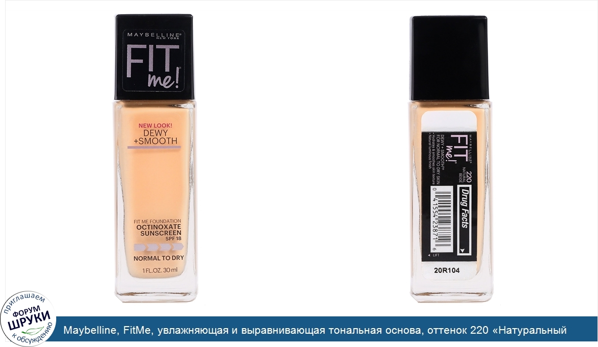 Друзья, если у вас есть отзыв/дополнение/комментарий/вопрос относительно Maybelline, FitMe, увлажняющая и выравнивающая тональная основа, оттенок 220 «Натуральный бежевый», 30мл (1 жидк.унция) - напишите его ответом в эту тему (это будет полезно всему сообществу в целом и вам в отдельности).