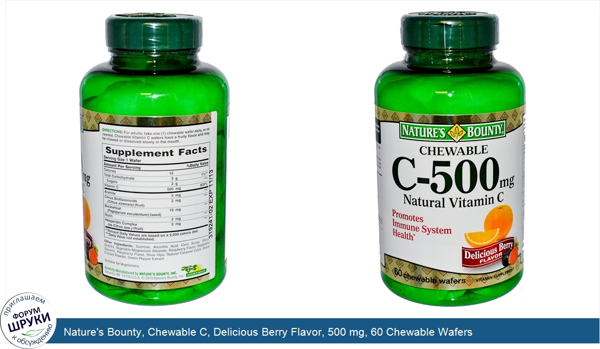 ru Nature's Bounty, Chewable C, Delicious Berry Flavor, 500 mg, 60 Chewable Wafers