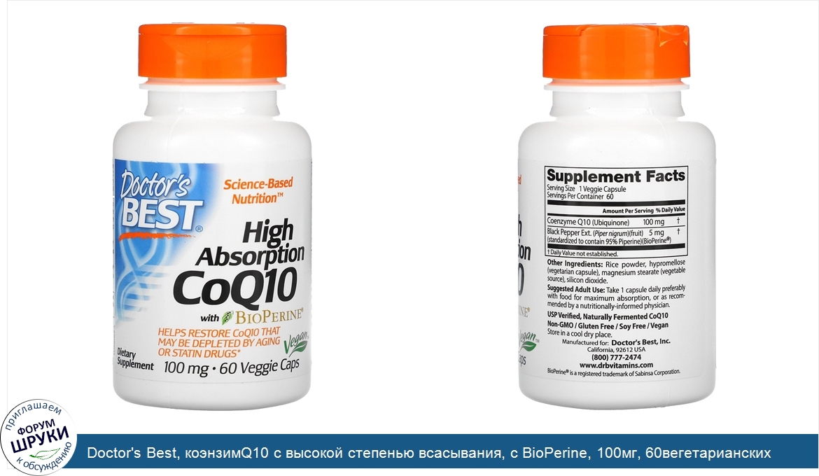 Друзья, если у вас есть отзыв/дополнение/комментарий/вопрос относительно Doctor's Best, коэнзимQ10 с высокой степенью всасывания, с BioPerine, 100мг, 60вегетарианских капсул - напишите его ответом в эту тему (это будет полезно всему сообществу в целом и вам в отдельности).