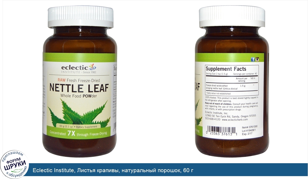 Друзья, если у вас есть отзыв/дополнение/комментарий/вопрос относительно Eclectic Institute, Листья крапивы, натуральный порошок, 60 г - напишите его ответом в эту тему (это будет полезно всему сообществу в целом и вам в отдельности).