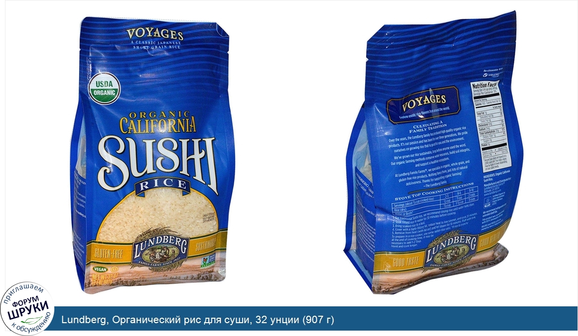 [DESCRIPT]Voyages - классический японский короткозерный рис. Органический Сертификат USDA. без глютена. экологический продукт. Производится на семейной ферме, работающей с 1937 г. веганский продукт. проверено не содержит ГМО. органический сертификат CCOF. превосходный вкус. полезен для здоровья. не содержит BPA (Бисфенол А). Коллекция Voyages - экзотические вкусы разных сортов риса со всего мира. производится с соблюдением семейных традиций. На протяжении многих лет семья Лундберг производит высококачественные продукты из органического риса. Это наша страсть в течение трех поколений. Мы гордимся тем, что выращиваем лучший рис, который хорош для Вас и окружающей среды. Мы начали выращивать рис методом устойчивого земледелия задолго до того, как слово «органический" стало популярным. Наши методы органического земледелия экономят водные ресурсы, поддерживают целостность почвы и здоровую экосистему. Семейные Фермы Лундберг специализируются на органическом цельнозерном рисе без глютена. Спасибо за поддержку органического земледелия! Короткозерный белый рис для суши. клейкий и оригинальный. классический японский рис, выращенный специально для приготовления суши. Он по-настоящему бесподобен в традиционных суши, роллах, салатах и других блюдах азиатской кухни. Без ГМО. Проверено. Семейные Фермы Лундберг поддерживают право потребителя на продукты, которые не были генетически модифицированы. Этот продукт был произведен в соответствии с лучшими практиками и высокими стандартами.[/DESCRIPT]... (описание дополняется)