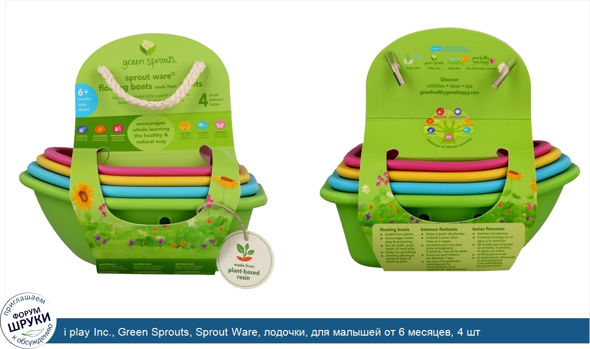 i play Inc., Green Sprouts, Sprout Ware, лодочки, для малышей от 6 месяцев, 4 шт