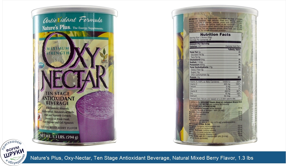 ru Nature's Plus, Oxy-Nectar, Ten Stage Antioxidant Beverage, Natural Mixed Berry Flavor, 1.3 lbs (594 g)