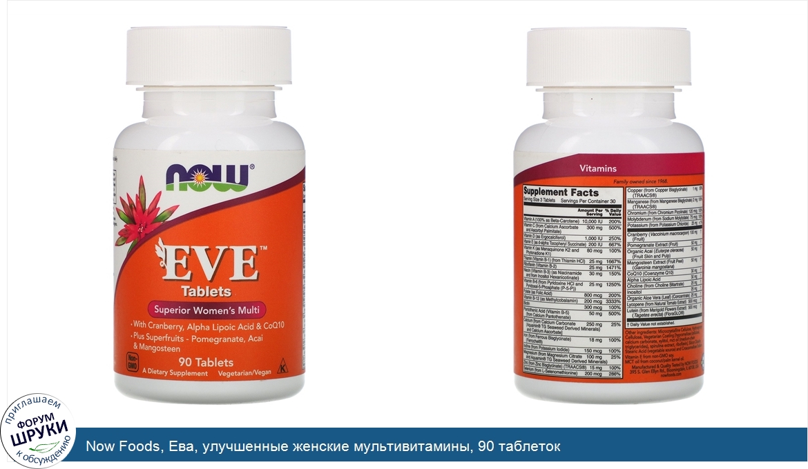 Друзья, если у вас есть отзыв/дополнение/комментарий/вопрос относительно Now Foods, Ева, улучшенные женские мультивитамины, 90 таблеток - напишите его ответом в эту тему (это будет полезно всему сообществу в целом и вам в отдельности).