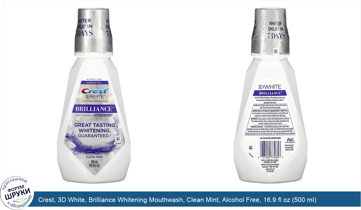 Друзья, если у вас есть отзыв/дополнение/комментарий/вопрос относительно Crest, 3D White, Brilliance Whitening Mouthwash, Clean Mint, Alcohol Free, 16.9 fl oz (500 ml) - напишите его ответом в эту тему (это будет полезно всему сообществу в целом и вам в отдельности).