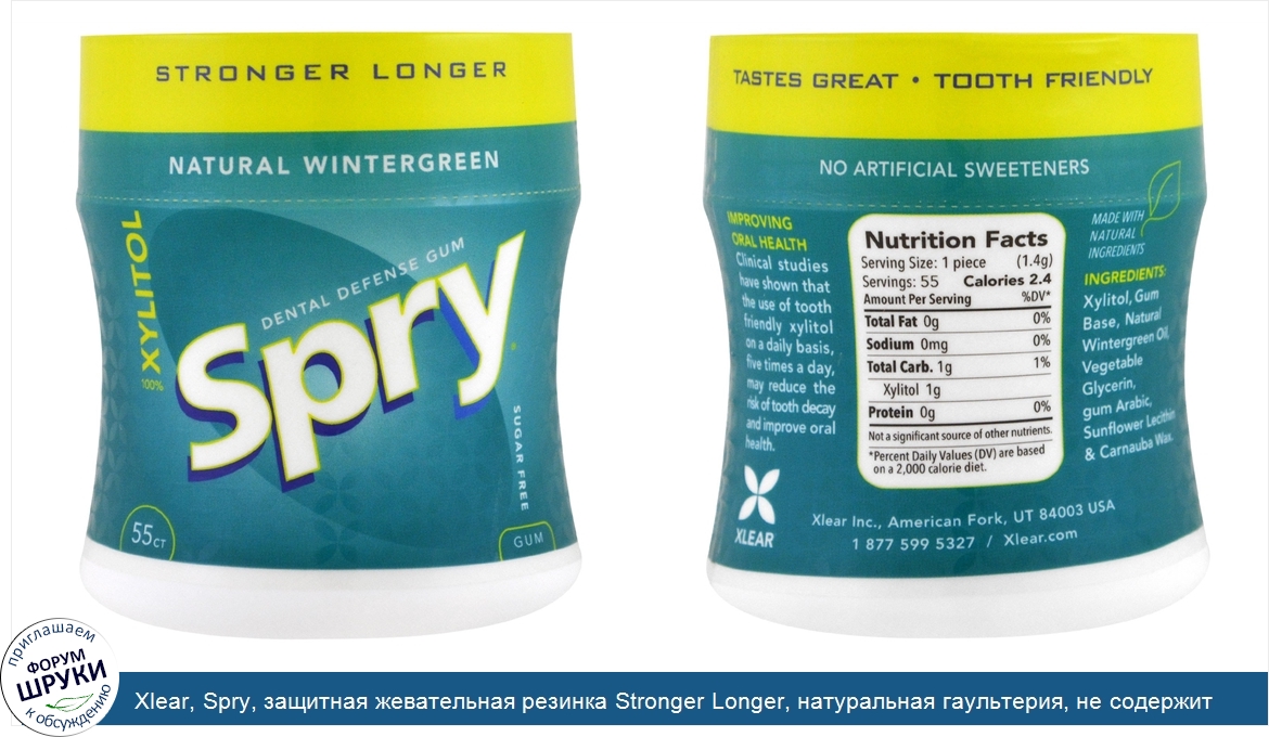 Друзья, если у вас есть отзыв/дополнение/комментарий/вопрос относительно Xlear, Spry, защитная жевательная резинка Stronger Longer, натуральная гаультерия, не содержит сахара, 55 шт. - напишите его ответом в эту тему (это будет полезно всему сообществу в целом и вам в отдельности).