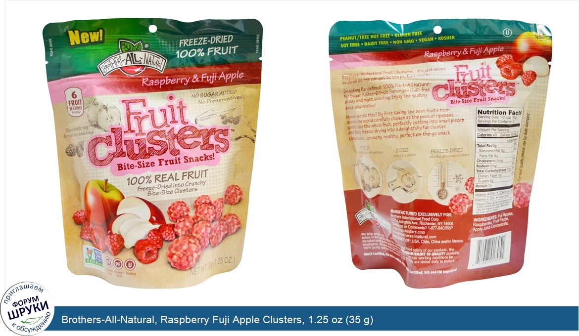 Друзья, если у вас есть отзыв/дополнение/комментарий/вопрос относительно Brothers-All-Natural, Raspberry Fuji Apple Clusters, 1.25 oz (35 g) - напишите его ответом в эту тему (это будет полезно всему сообществу в целом и вам в отдельности).