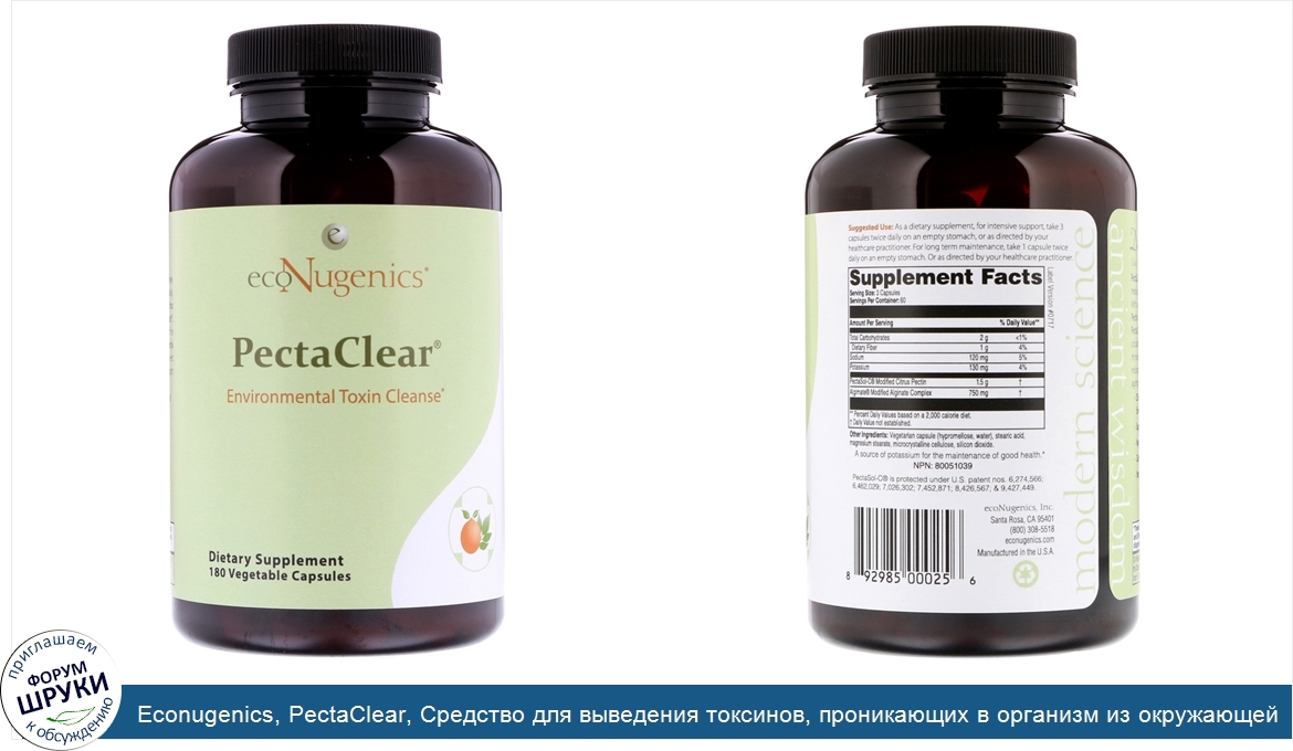 Друзья, если у вас есть отзыв/дополнение/комментарий/вопрос относительно Econugenics, PectaClear, Средство для выведения токсинов, проникающих в организм из окружающей среды, 180 растительных капсул - напишите его ответом в эту тему (это будет полезно всему сообществу в целом и вам в отдельности).
