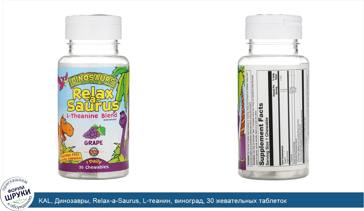 Друзья, если у вас есть отзыв/дополнение/комментарий/вопрос относительно KAL, Динозавры, Relax-a-Saurus, L-теанин, виноград, 30 жевательных таблеток - напишите его ответом в эту тему (это будет полезно всему сообществу в целом и вам в отдельности).