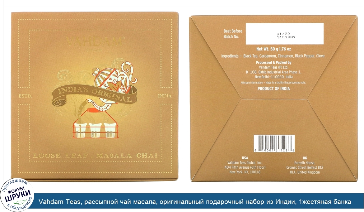 Друзья, если у вас есть отзыв/дополнение/комментарий/вопрос относительно Vahdam Teas, рассыпной чай масала, оригинальный подарочный набор из Индии, 1жестяная банка - напишите его ответом в эту тему (это будет полезно всему сообществу в целом и вам в отдельности).