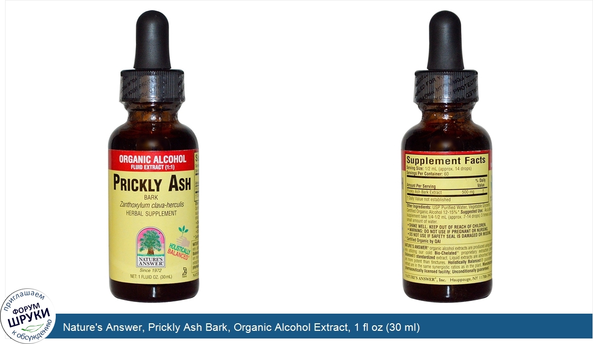 Друзья, если у вас есть отзыв/дополнение/комментарий/вопрос относительно Nature's Answer, Prickly Ash Bark, Organic Alcohol Extract, 1 fl oz (30 ml) - напишите его ответом в эту тему (это будет полезно всему сообществу в целом и вам в отдельности).