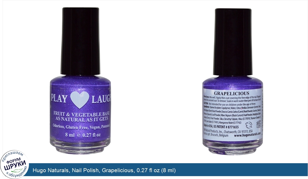 Друзья, если у вас есть отзыв/дополнение/комментарий/вопрос относительно Hugo Naturals, Nail Polish, Grapelicious, 0.27 fl oz (8 ml) - напишите его ответом в эту тему (это будет полезно всему сообществу в целом и вам в отдельности).