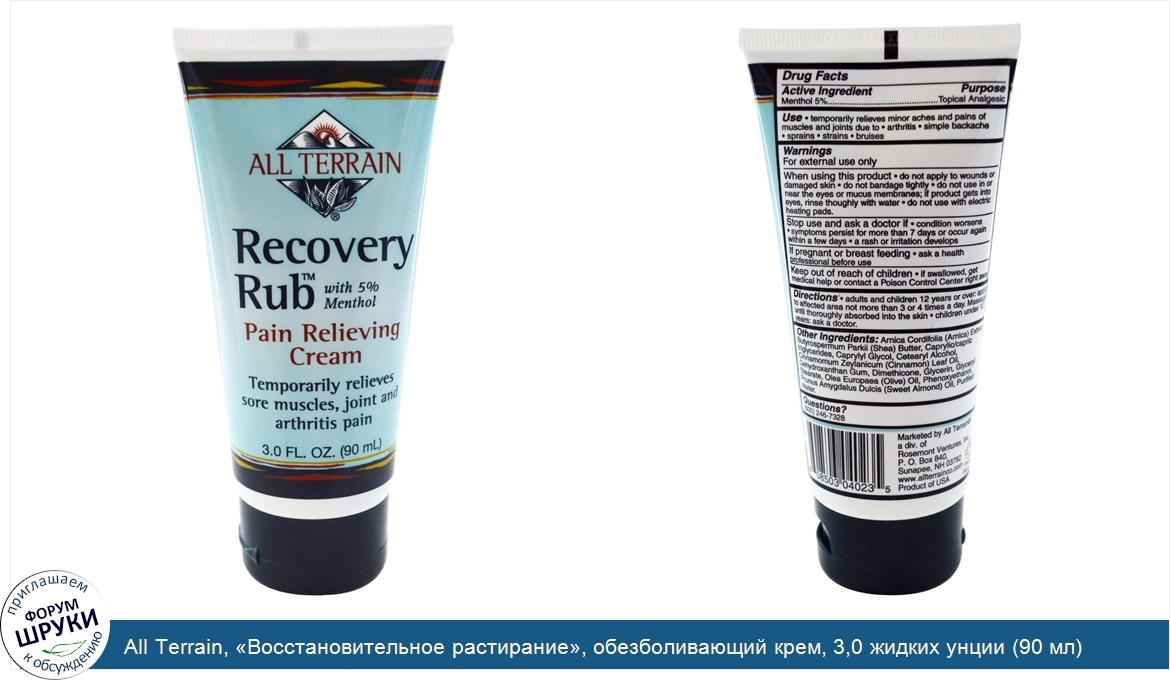 All Terrain, «Восстановительное растирание», обезболивающий крем, 3,0 жидких унции (90 мл)