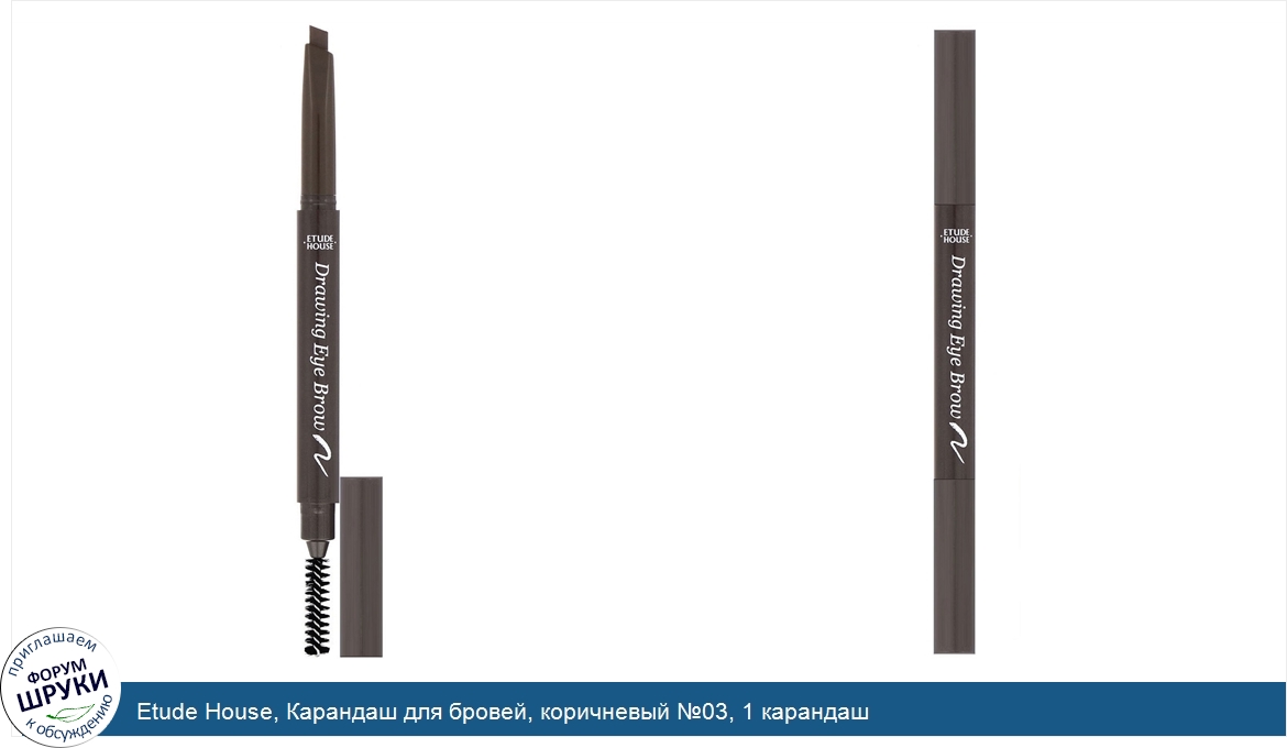 Etude House, Карандаш для бровей, коричневый №03, 1 карандаш