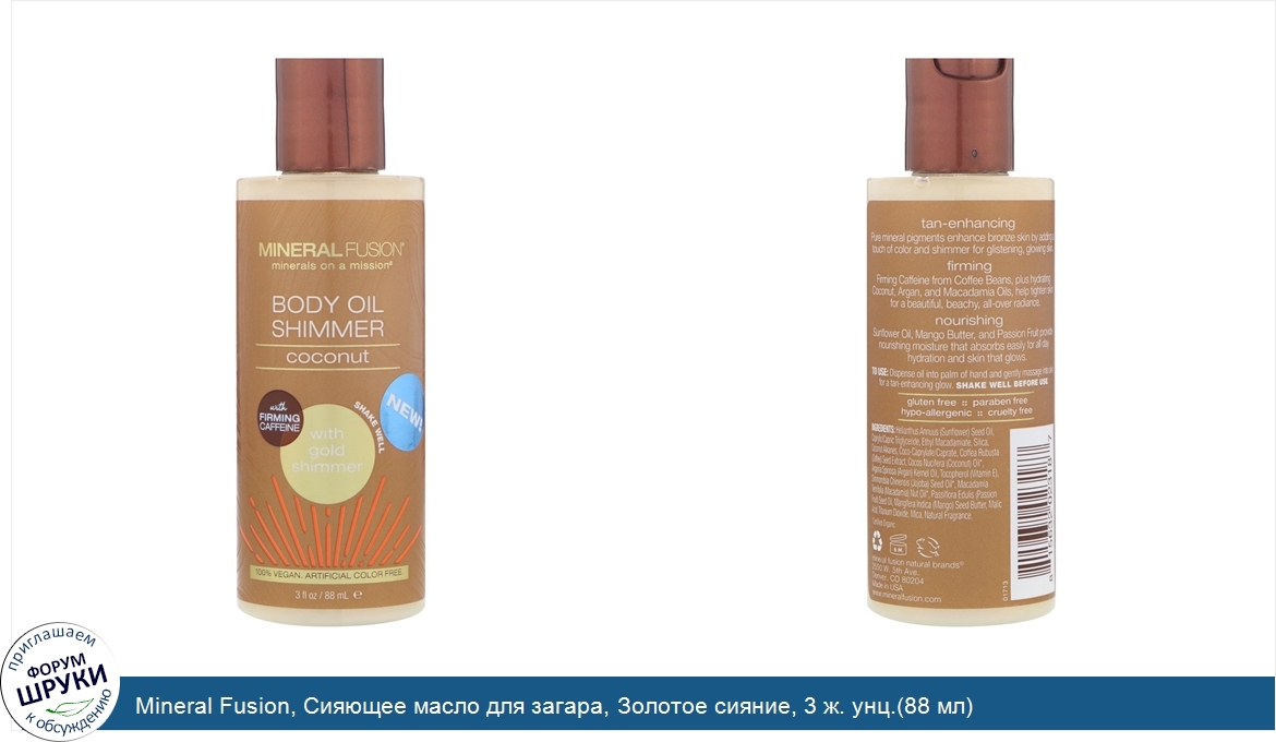 Друзья, если у вас есть отзыв/дополнение/комментарий/вопрос относительно Mineral Fusion, Сияющее масло для загара, Золотое сияние, 3 ж. унц.(88 мл) - напишите его ответом в эту тему (это будет полезно всему сообществу в целом и вам в отдельности).