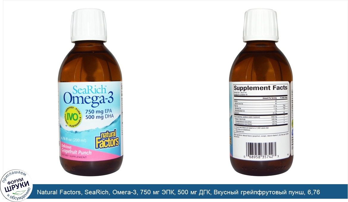 Друзья, если у вас есть отзыв/дополнение/комментарий/вопрос относительно Natural Factors, SeaRich, Омега-3, 750 мг ЭПК, 500 мг ДГК, Вкусный грейпфрутовый пунш, 6,76 жидк. унц. (200 мл) - напишите его ответом в эту тему (это будет полезно всему сообществу в целом и вам в отдельности).