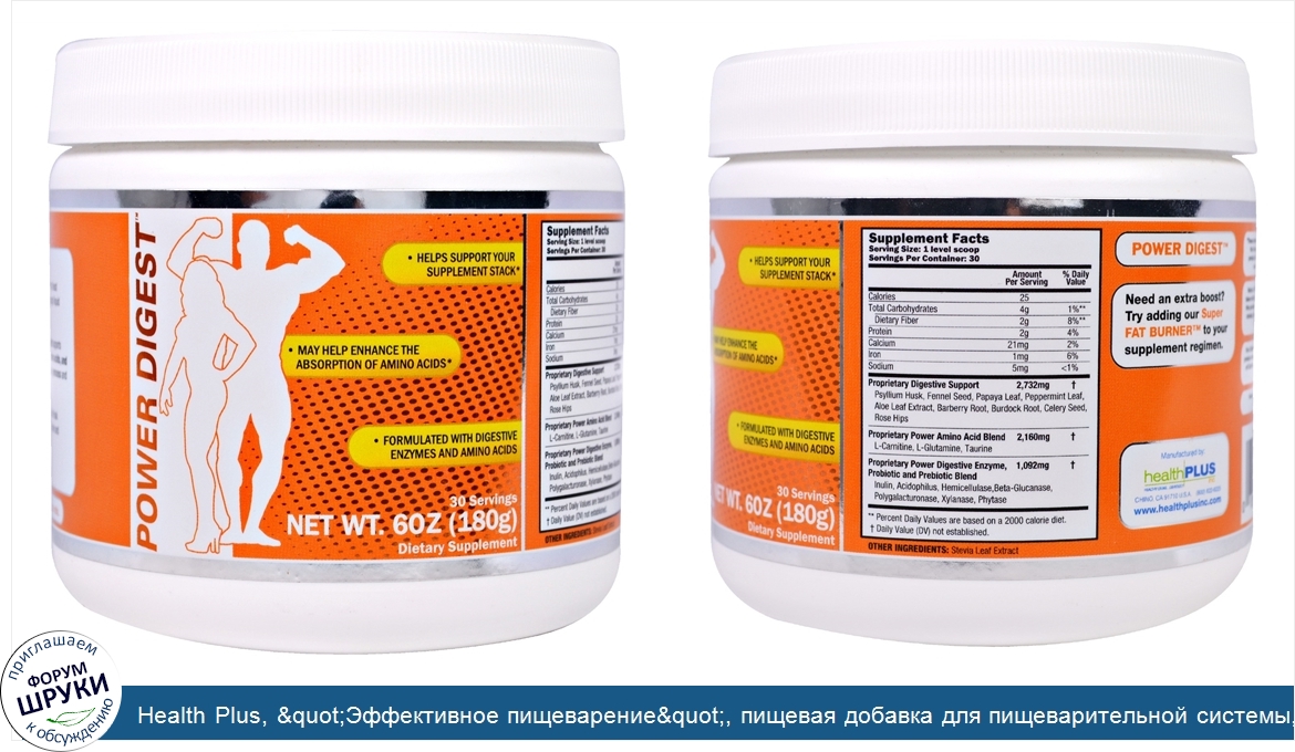 Друзья, если у вас есть отзыв/дополнение/комментарий/вопрос относительно Health Plus, "Эффективное пищеварение", пищевая добавка для пищеварительной системы, 6 унций (180 г) - напишите его ответом в эту тему (это будет полезно всему сообществу в целом и вам в отдельности).