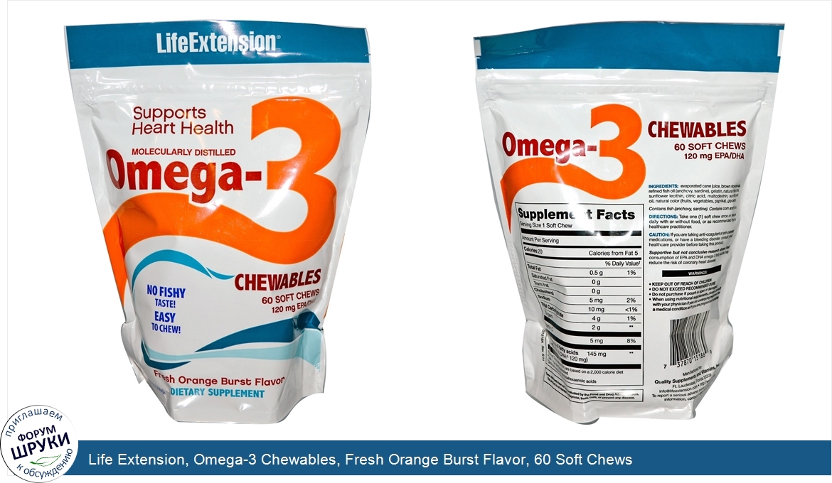 Друзья, если у вас есть отзыв/дополнение/комментарий/вопрос относительно Life Extension, Omega-3 Chewables, Fresh Orange Burst Flavor, 60 Soft Chews - напишите его ответом в эту тему (это будет полезно всему сообществу в целом и вам в отдельности).