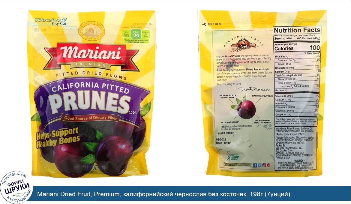Категории: Mariani Dried Fruit, Продукты питания, Фрукты и овощи, Слива и чернослив, Закуски, 103114