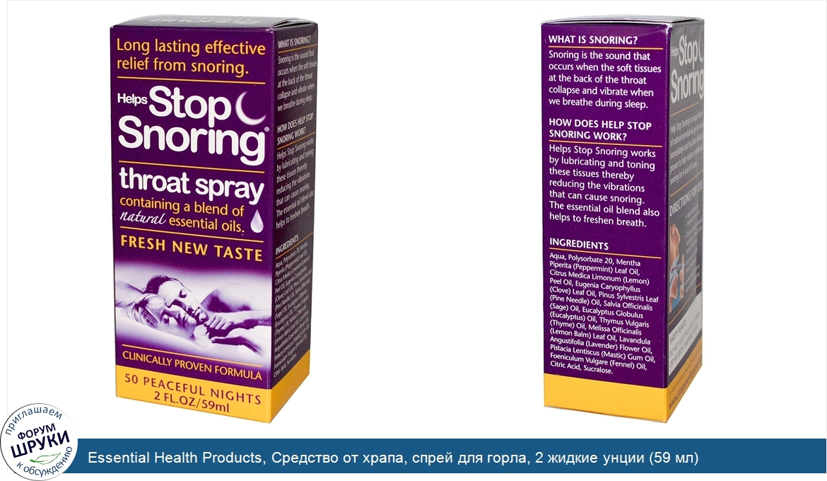 Друзья, если у вас есть отзыв/дополнение/комментарий/вопрос относительно Essential Health Products, Средство от храпа, спрей для горла, 2 жидкие унции (59 мл) - напишите его ответом в эту тему (это будет полезно всему сообществу в целом и вам в отдельности).