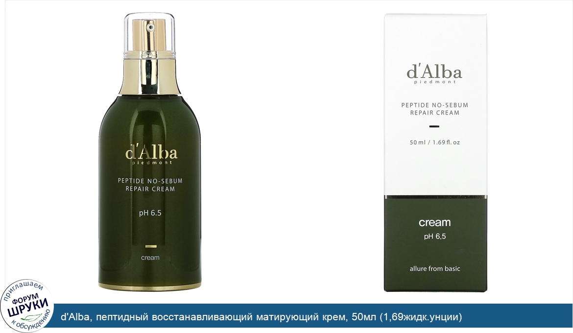 d'Alba, пептидный восстанавливающий матирующий крем, 50мл (1,69жидк.унции)